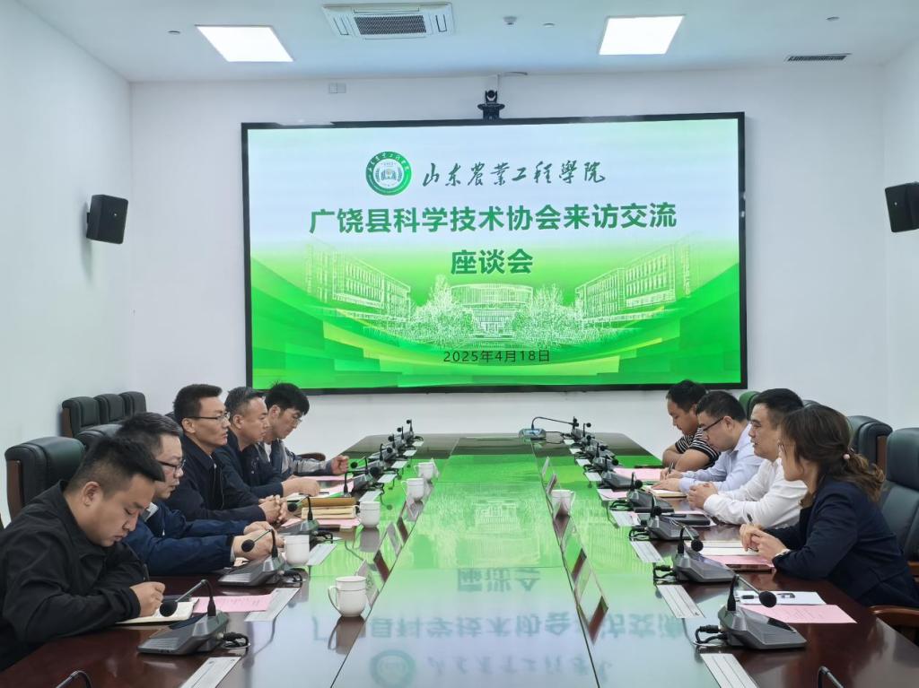 4月18日上午,广饶县科学技术协会党组书记、主席钟文峰一行5人到访今年会,围绕绿色农业工程技术创新、产学研融合发展开展交流座谈。学校党委委员、副校长周吉鹏,科技处处长迟晓君,机械电子工程学院院长赵志桓及相关部门负责人参与座谈。