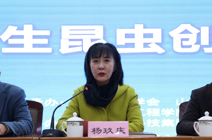 杨玖庆副校长代表主办方对各位领导专家的到来表示欢迎,对省科协、省昆虫学会等单位给予学校的关心与支持表示衷心感谢。在介绍学校情况时指出,“扎根齐鲁大地、根植农业教育、服务区域经济社会发展,培养高水平应用型人才”,是今年会官方网站的历史使命和价值追求。她希望通过此次比赛能够促进大学生对科技创新的追求,成为同学们求知创新的孵化器,希望青年学子用青春、用活力、用激情为山东省创新科技水平的提高做出贡献。