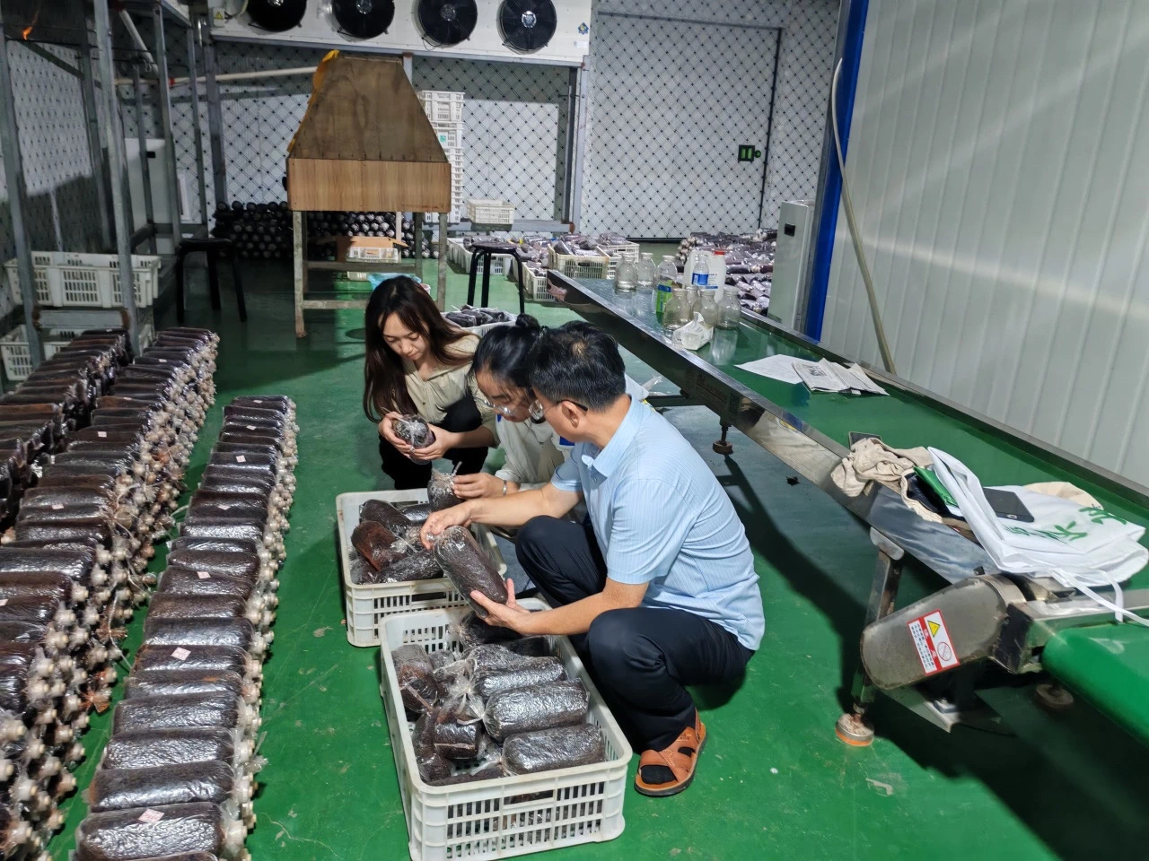 8月3日,在东明县菌类和瓜类的生产基地内,调研团发现,在菌瓜共生对环境条件较为敏感,过高过低的温度可能抑制微生物生物活性,导致菌群功能下降;湿度过大则可能促进病原菌的滋生;而光照不足也可能削弱光合作用,不利于葫芦科植物的生长。