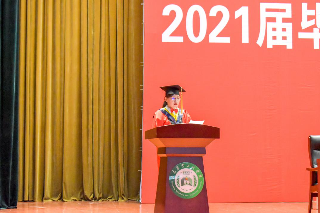 2021届毕业生代表王思楠同学在发言中说,林业工程学院的点点滴滴已经在我们记忆中无法抹去,各位老师的教导更会铭记。并回忆了美好的大学生活,表达了对母校的深情眷恋和对师友的真挚感恩。