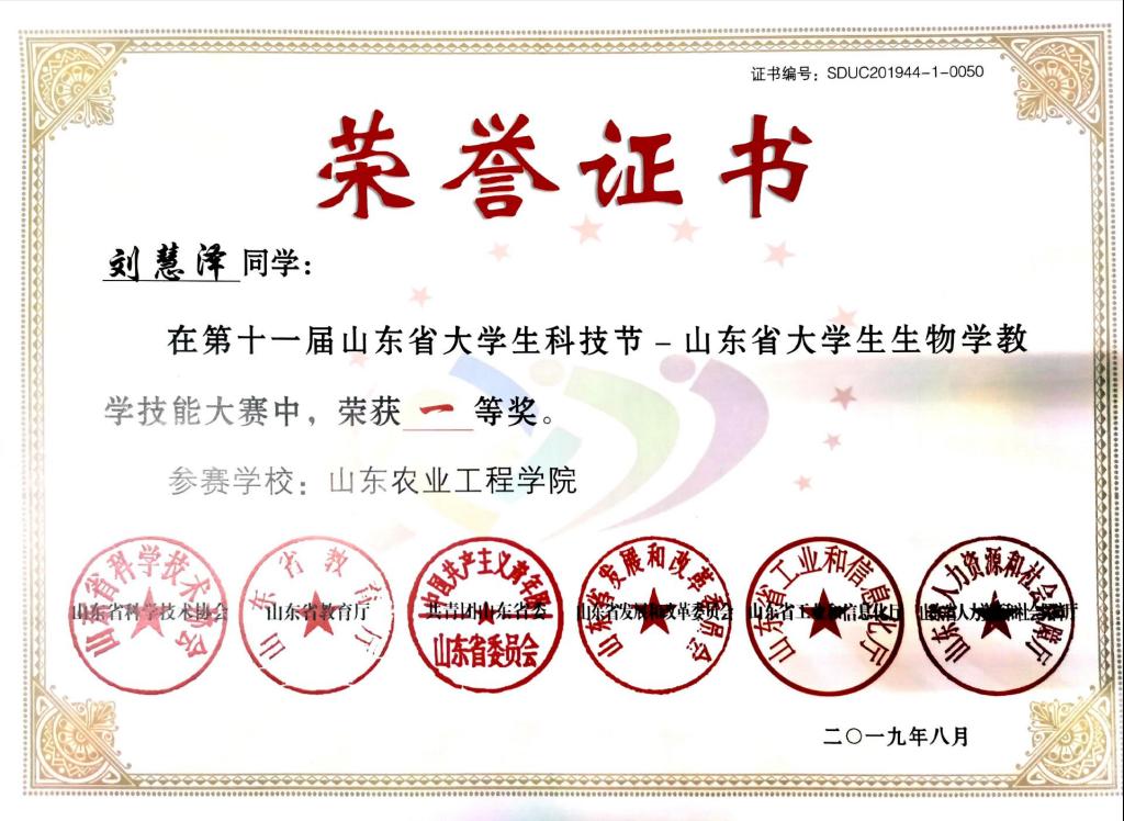 第十一届山东省大学生科技节-山东省大学生生物学教学技能大赛一等奖