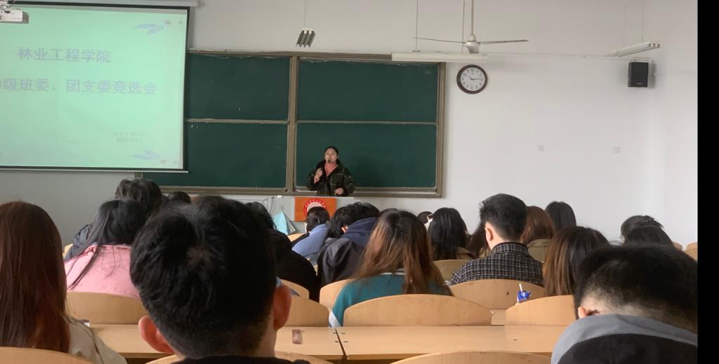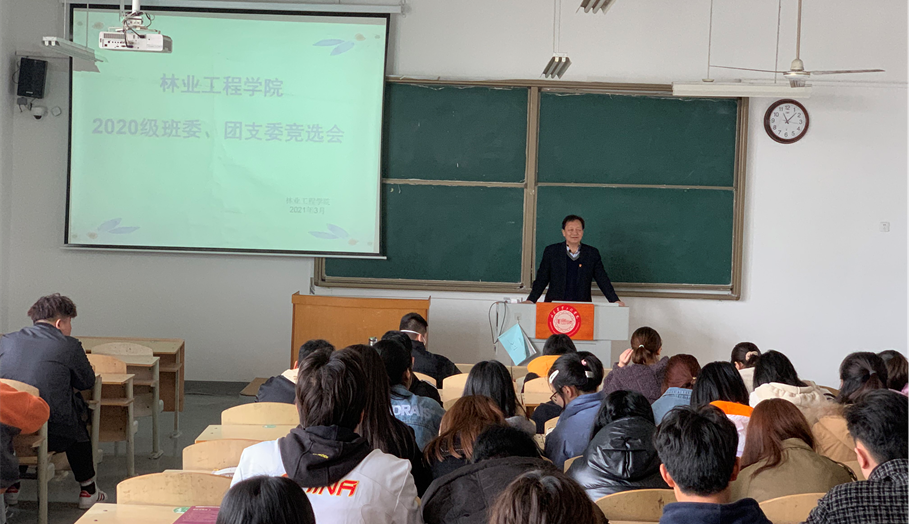 2021年3月17日,我院在北校区2-1教室召开了2020级班委、团支委干部竞选会。出席本次竞选会的人员有林业工程学院党支部书记徐金强、团总支、各辅导员老师及林业工程学院风景园林、森林保护、园林技术专业的全体同学。