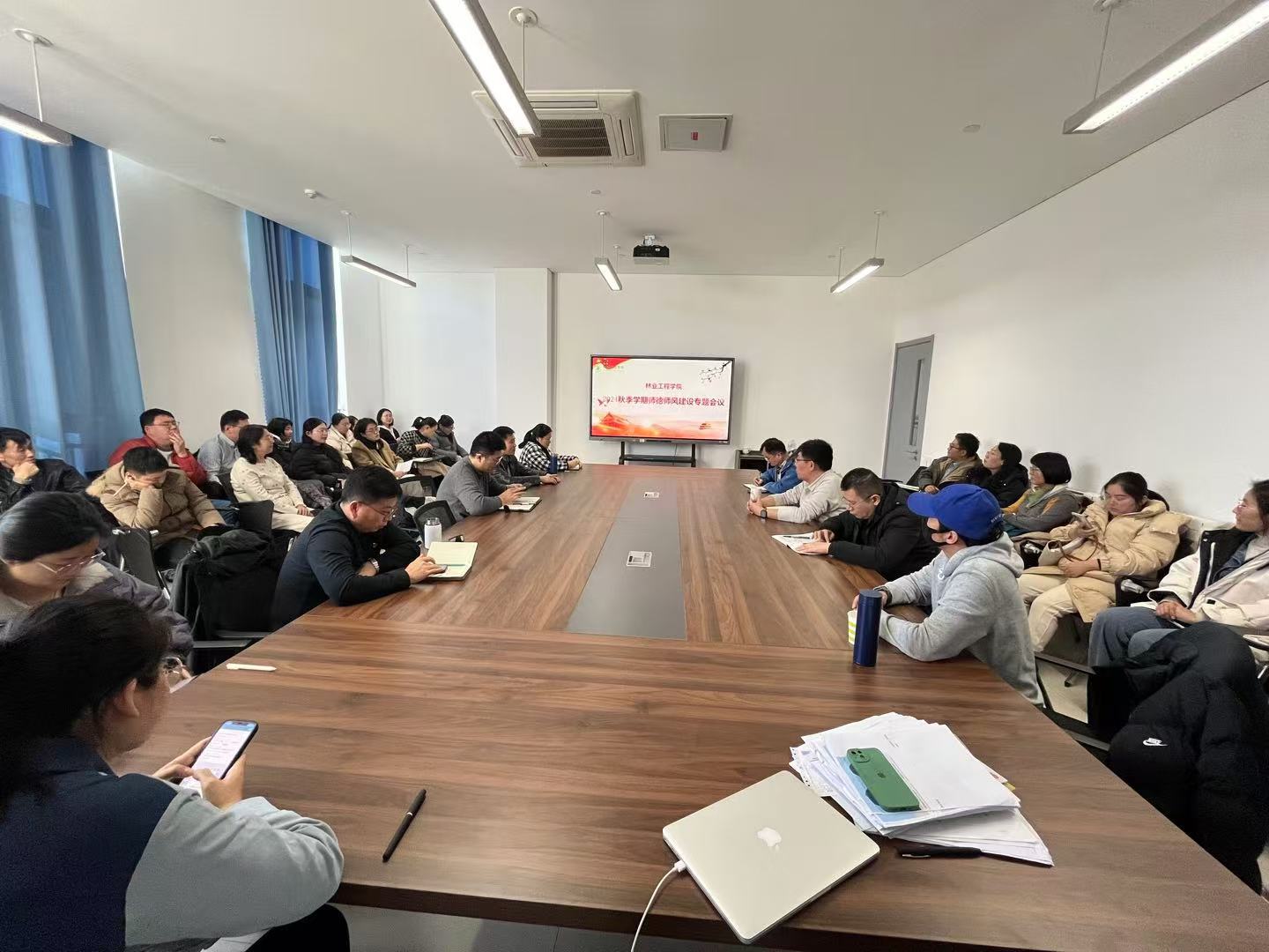为有效防范化解师德失范风险隐患,2024年11月29日下午,林业工程学院召开高校师德师风工作专题研讨会,学院党总支书记赵阳主持会议,学院全体教职工参加会议。