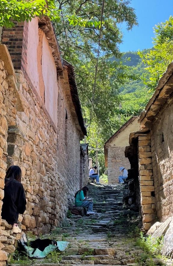本次写生实习主要选择在云明山古村落、峨庄瀑布群、东东峪村民宿等三个景区进行,经过本次风景写生,同学们掌握了绘画前的取景,绘制过程中的构图、主次和取舍,是对前期学习的美术基础、设计表现技法的综合应用,为后期专业设计方案的表达奠定良好的基础。