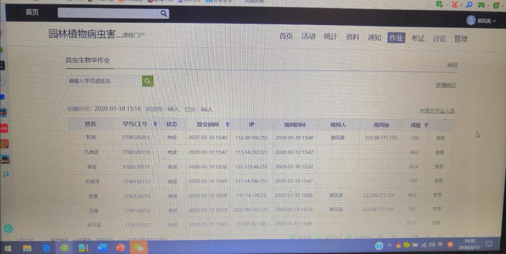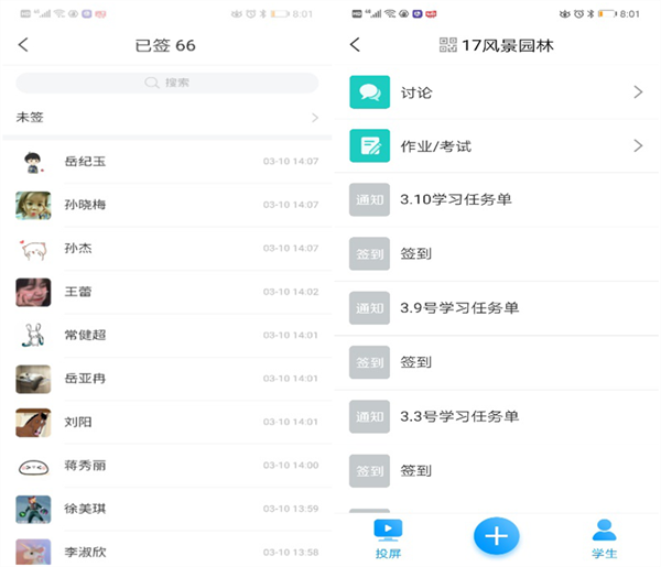 学生讨论情况和作业情况,老师都可以及时查看。对未完成作业的还可以给学生发消息督促。