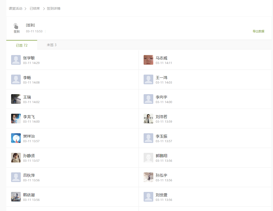 1、开始上课,在超星泛亚平台或APP端设置好签到方式、签到时间,检查学生出勤情况。