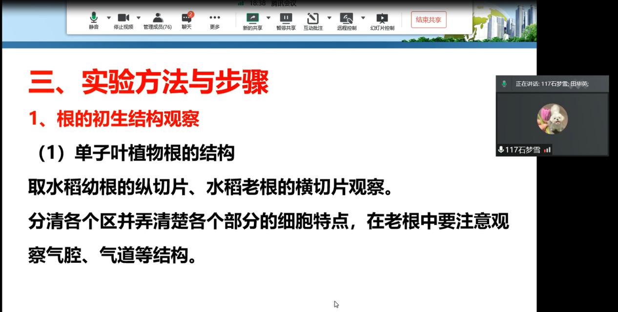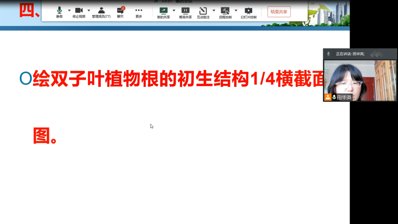 [BFL06107]《植物基础实验》课程是风景园林专业必修课程,由田华英老师主讲,听课日期5月5日,周四3-4节。田老师采用了智慧树方式进行直播,效果较好,现将案例分享给大家,以期共同提高教学能力。