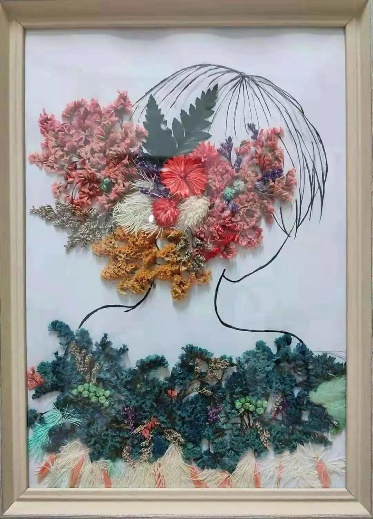 比赛开始前由主持人讲解此次比赛的流程和规则。此后,参赛人员充分发挥灵感和创意,在与老师们的交流和指导中将各种颜色、形状的植物、花瓣以及植物种子进行巧妙的结合。最后呈现出一幅幅美丽的作品,或是惟妙惟肖的动物,或是千姿百态的植物,还有展现社会热点的新创意作品。