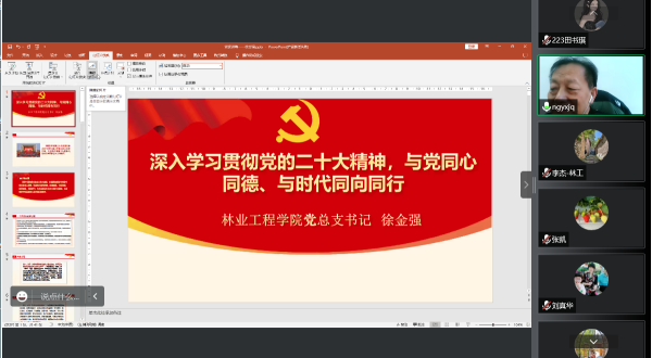 按照校党委部署要求和学院安排,12月8日下午,学院党总支书记、学校学习宣传贯彻党的二十大精神宣讲团成员徐金强,以《入学习贯彻党的二十大精神,与党同心同德、与时代同向同行》为题,通过腾讯会议形式为师生党员上党课并在师生中宣讲党的二十大精神。学院党政班子成员,全体党员及教师,2020级本科、2021级全体专科学生等190多人参加会议。