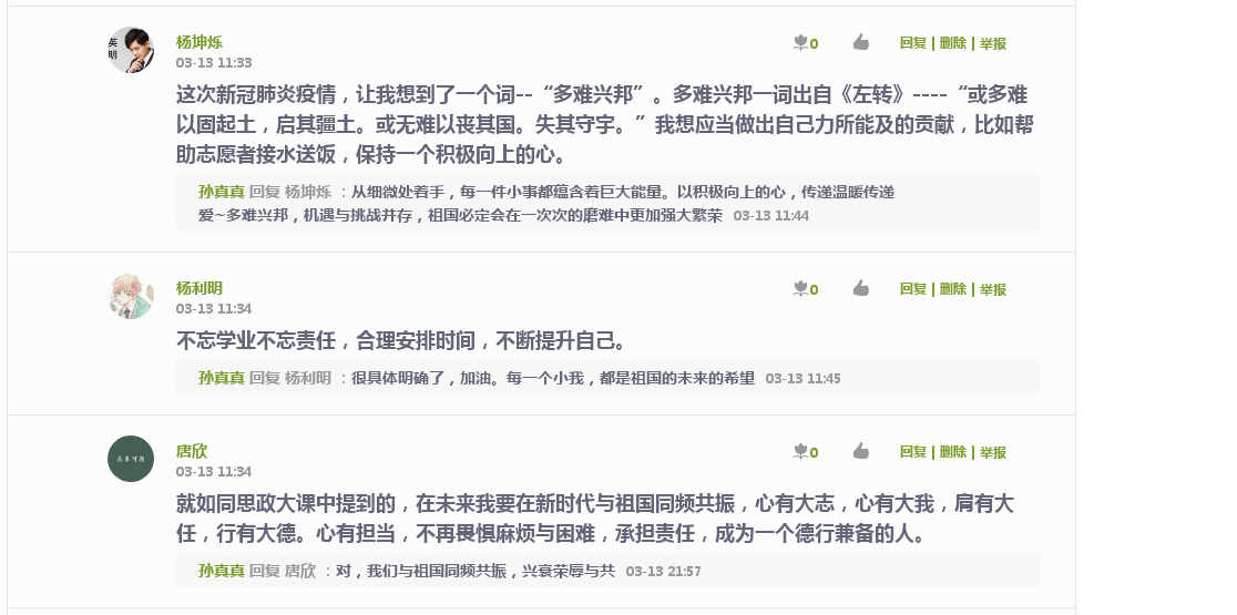 通过此次组织同学收看讨论此次疫情思政大课堂,同学们深化了对疫情相关知识的了解,受到了一次广泛的爱国主义精神熏陶,深刻地认识中国共产党领导和中国特色社会主义制度的显著优势。第一党支部的教师们也纷纷表示,一定在这关键的时刻为大学生解疑答惑、鼓劲加油,并引领大学生们积极投身到这场全民抗疫伟大斗争中去。