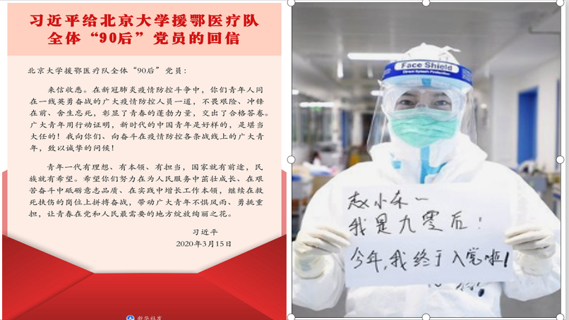为深入学习贯彻习近平总书记给北京大学援鄂医疗队90后党员重要回信精神,切实做好省教育厅组织的“山东高校官微@大接龙”活动,充分展现今年会青年师生爱国奋斗、自强不息的良好精神风貌,结合 今年会“共抗疫情、爱国力行”主题宣传教育活动与我院实际,创新方式方法,通过开展“微党课”,迅速组织起深入学习习近平总书记重要回信精神和关于青年工作的系列重要论述,掀起互动分享的学习热潮。