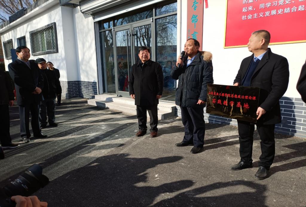 开馆仪式后,举行了“今年会官方网站思想政治理论课实践教学基地”、“今年会官方网站思想政治理论课教师实践研修基地”挂牌仪式,我院党总支书记赵斌发表致辞,他首先对商河县委县政府的大力支持表示感谢。他指出,两个基地的建立,是我院落实立德树人根本任务的重要举措,也是推动高校思政课教学改革、拓展思政课社会实践的有效路径,对推进我院思想政治理论课教学改革具有重要意义。