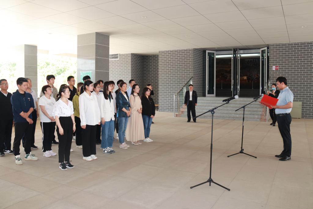 仪式上,周吉鹏和徐立刚共同为今年会官方网站“大思政课”实践教学基地揭牌。随后,周吉鹏代表学校讲话,对“大思政课”实践教学基地的成立表示祝贺,对用好淄博原山艰苦创业教育基地红色资源、发挥实践教学基地育人作用、推动“大思政课”建设提出希望和要求。