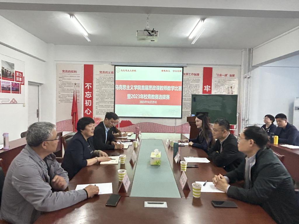 10月29日,马克思主义学院首届思政课教学比赛暨2023年校青教赛选拔赛在二号教学楼309室举行。本次比赛特邀山东大学马克思主义学院副院长马明冲、山东师范大学马克思主义学部副部长吴春雷、青岛理工大学马克思主义学院教师史倩作为评委专家,教学质量保障与评估中心主任兼教务处副处长付琦、马克思主义学院班子成员、教授、各教研室主任、青年教师参加本次活动,校党委委员、副校长郑华美出席活动并对学院思政课建设工作进行调研指导。