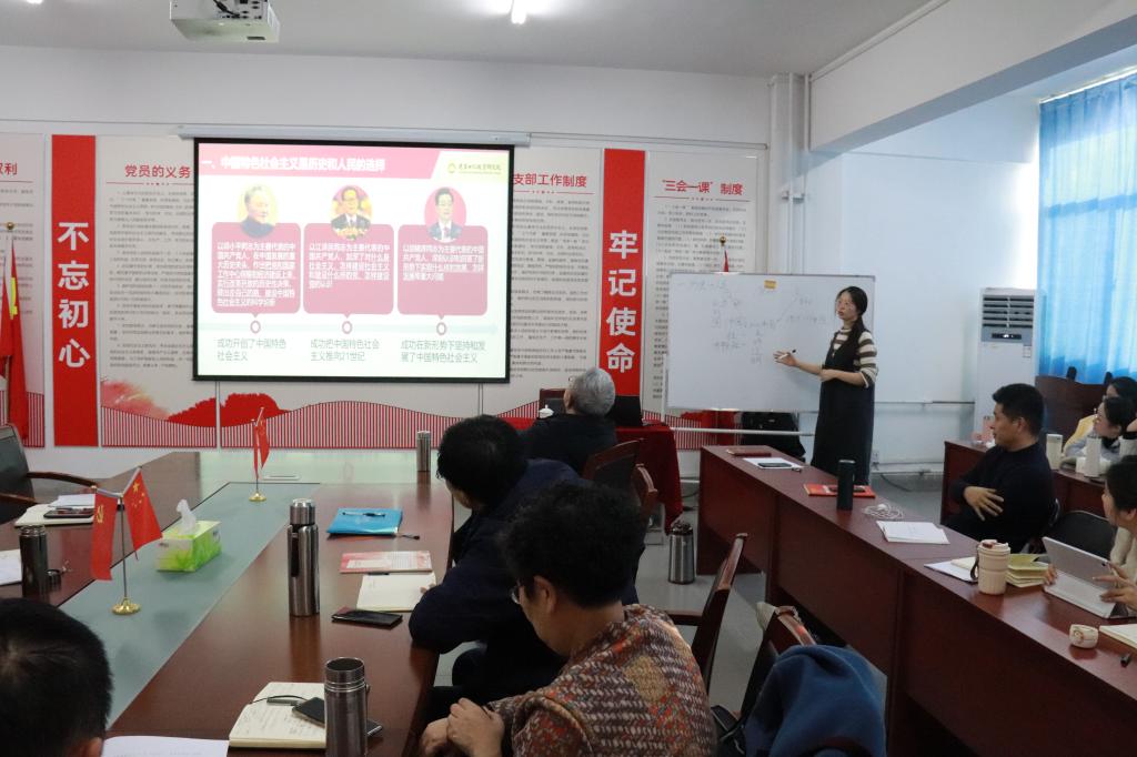 “习近平新时代中国特色社会主义思想概论”教研室教师孙璠以《中国特色社会主义是历史和人民的选择》为题作教学展示,周向军教授、我院教师做了精彩点评。周向军教授就把握好课程间关系、做好知识逻辑建构、激发学生积极性主体性三点分享了上好思政课的心得体会。