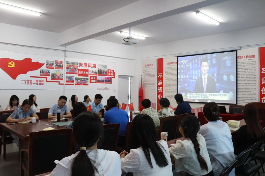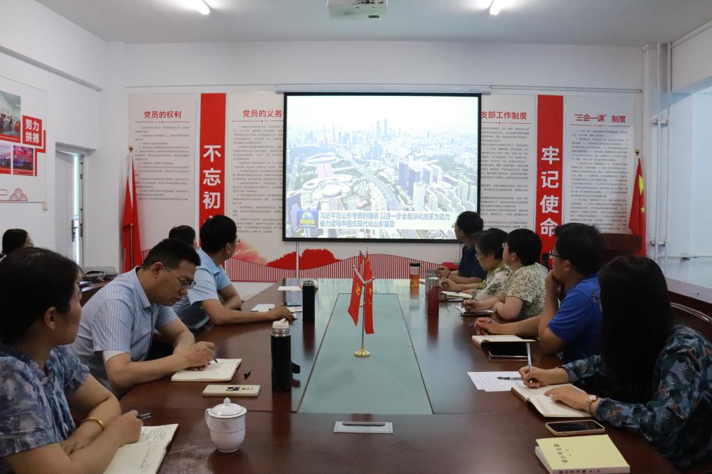 会上,参会人员集体学习观看5月24日央视《新闻联播》播映《习近平在山东考察时强调 以进一步全面深化改革为动力 奋力谱写中国式现代化山东篇章》内容。