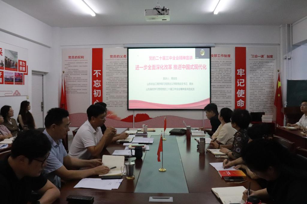最后,周安忠以《进一步全面深化改革推进中国式现代化》为题宣讲党的二十届三中全会精神,以“为什么要进一步全面深化改革、怎样进一步推进全面深化改革、进一步全面深化改革改什么”为逻辑深入浅出阐述了党的二十届三中全会精神的核心要义,强调了全面深化改革在推进中国式现代化进程中的重要性。会议强调,要深入学习党的二十届三中全会精神,做好理论宣讲工作,勇于担当、敢于作为,以实际行动推进全面深化改革,为实现中国式现代化贡献智慧和力量,推动学院各项工作迈向新台阶。