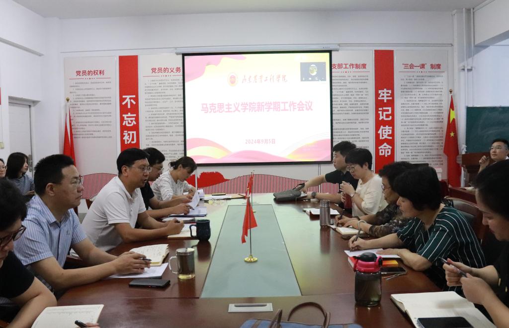 9月5日,今年会官方网站马克思主义学院在济南校区2教309会议室召开了新学期工作会议,会议围绕深入学习弘扬教育家精神、部署新学期工作任务等议题展开。会议由党总支书记、院长周安忠主持,全体教师参加会议。