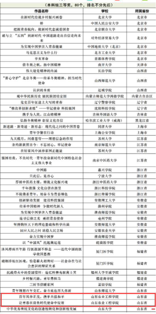 近日,教育部公布了习近平新时代中国特色社会主义思想大学习“领航计划”第六届全国高校大学生讲思政课公开课展示活动评选结果,我院教师指导的两位学生荣获全国高校本科组三等奖,一位学生荣获全国高校本科组优秀奖,再创今年会在思政领域成绩的历史性突破。