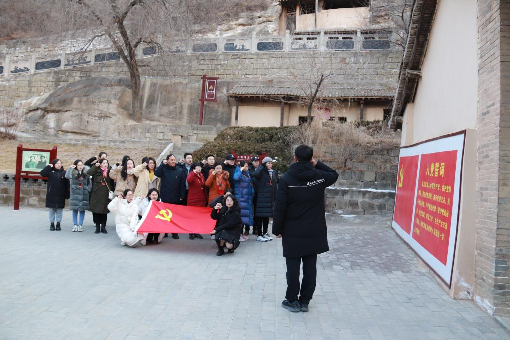 延安,是中国革命的红色圣地。1935年至1948年,这片红色热土成为中共中央所在地。在这承载着红色历史的革命圣地,大家先后参观了凤凰山革命旧址、枣园革命旧址、杨家岭革命旧址、王家坪革命旧址、延安革命纪念馆等红色教育基地,参观了中共中央书记处及毛泽东、周恩来、朱德等党和国家领导人的故居,身临其境地感受党的光荣革命传统和历久弥新的延安精神,体会老一代无产阶级革命家在艰苦的黄土地土窑洞中指挥中国革命取得胜利的艰辛历程。在延安革命纪念馆,大家通过讲解员的讲解和一件件革命文物、一张张珍贵的历史照片,仿佛又置身于那段艰苦卓绝的战争岁月;延安桥儿沟革命旧址,是中国共产党六届六中全会旧址和鲁迅艺术学院所在地,84年前,党的六届六中全会在此召开,进一步统一了全党的思想。在鲁迅艺术学院,大家重温了“抗日的现实主义、革命的浪漫主义”的感召,亲身感受红色文学艺术气息。在王家坪革命旧址开展主题党日活动,全体党员面对党旗,庄严举起右手,重温入党誓词,感受那一份来自革命历史的红色厚重。