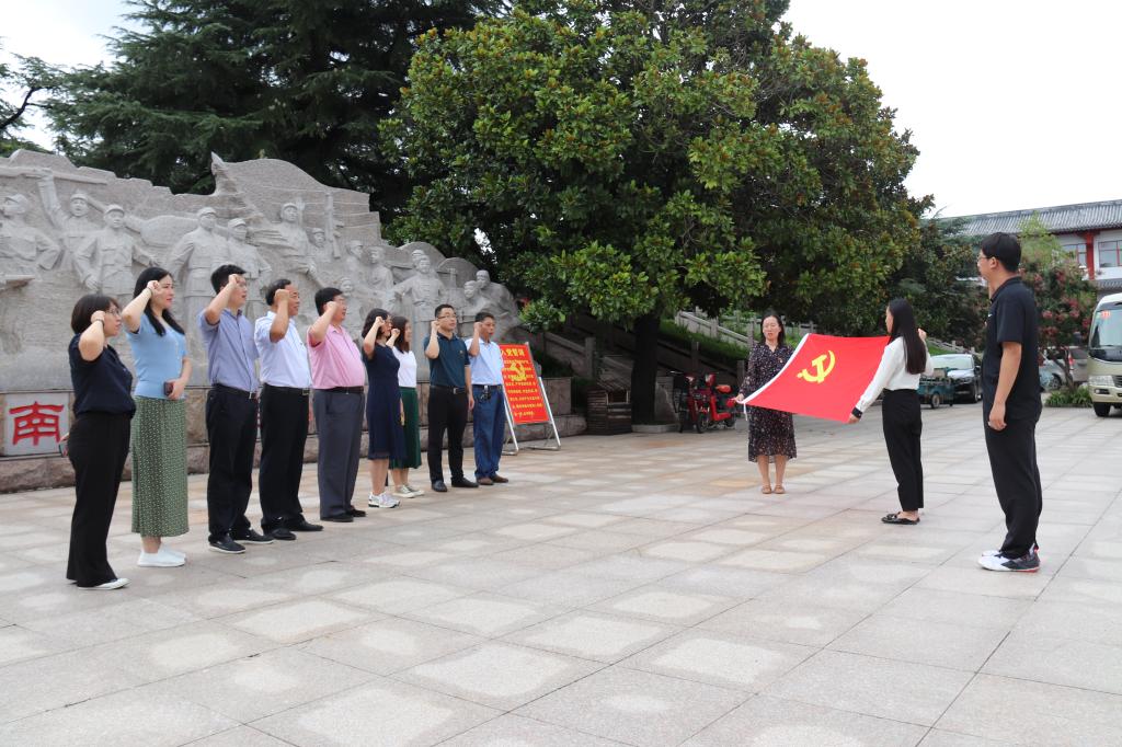 最后,所有教师面向鲜红的党旗,举起右拳,重温入党誓词,用铿锵有力的誓言表明坚守初心、忠诚于党、无私奉献的坚定信念。