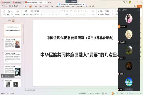 为深入贯彻落实习近平总书记关于铸牢中华民族共同体意识的要求,发挥思政课铸魂育人的主渠道作用,4月18日晚,中国近现代史纲要课程组教师开展线上集体备课会,会议由教研室主任邢世政主持,课程组全体教师参加。