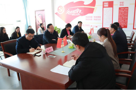 12月2日下午,校党委书记丁希滨来我院就学习宣传贯彻党的十九届六中全会精神召开座谈会,党委委员、宣传部部长郑华美,进修学院院长、党委(学院)办公室副主任张秀广,党委组织部副部长刘庆涛参加活动。马院部分教师代表参加座谈,座谈会由马克思主义学院党总支书记兼院长赵斌主持。