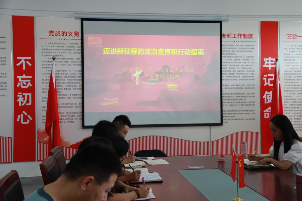 为深入学习宣传贯彻习近平总书记在庆祝中国共产党成立100周年大会上的重要讲话精神,推动党史学习教育往深里走、往实里走,7月22日下午,院党总支书记赵斌以《迈进新征程的政治宣言和行动指南》为题在第二教学楼309会议室为我院教工第一党支部党员讲了一堂生动的党课。赵斌指出:习近平总书记在庆祝中国共产党成立100周年大会上的重要讲话,立足中国共产党百年华诞的重大时刻,站在政治和全局的战略高度,全面回顾党成立一百年来的光辉历程和伟大成就,庄严宣告第一个百年奋斗目标的胜利实现,深刻揭示伟大建党精神,系统阐明党带领人民百年奋斗的宝贵经验和深刻启示,明确提出在新的征程上“以史为鉴、开创未来”的根本遵循和实践要求。是一篇马克思主义纲领性文献,是新时代中国共产党人不忘初心、牢记使命的政治宣言,是我们党团结带领人民以史为鉴、开创未来的行动指南。我们要把学习宣传贯彻“七一”重要讲话精神作为当前和今后一个时期一项重大政治任务,作为党史学习教育的核心内容,深刻领会和把握讲话的重大意义、丰富内涵、核心要义、实践要求,切实把思想和行动统一到讲话精神上来。以学习贯彻“七一”重要讲话精神为契机,丰富拓展党史学习教育的内涵,紧密联系工作实际,把学习“七一”重要讲话精神同做好当前各项工作结合起来,奋进新征程、建功新时代。