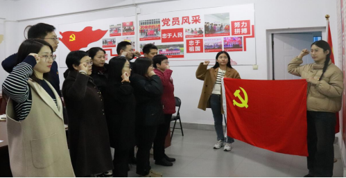 首先,高杨同志领学《中国共产党党徽党旗条例》,生动细致地从该条例制定的重大意义、主要内容以及如何规范地使用党徽党旗三方面进行解读。学习完毕后,二支部全体党员面向鲜红的党旗,一起紧握右拳,庄严肃立,重温了入党誓词。