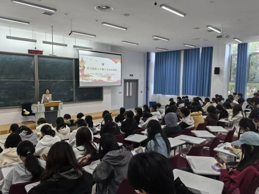 为深入学习贯彻党的二十届三中全会精神,推动党的理论在校园内落地生根,10月24日,我院教师燕鹏在淄博校区公共教学南楼B202为林业工程学院青马“启航班”学员宣讲党的二十届三中全会精神。
