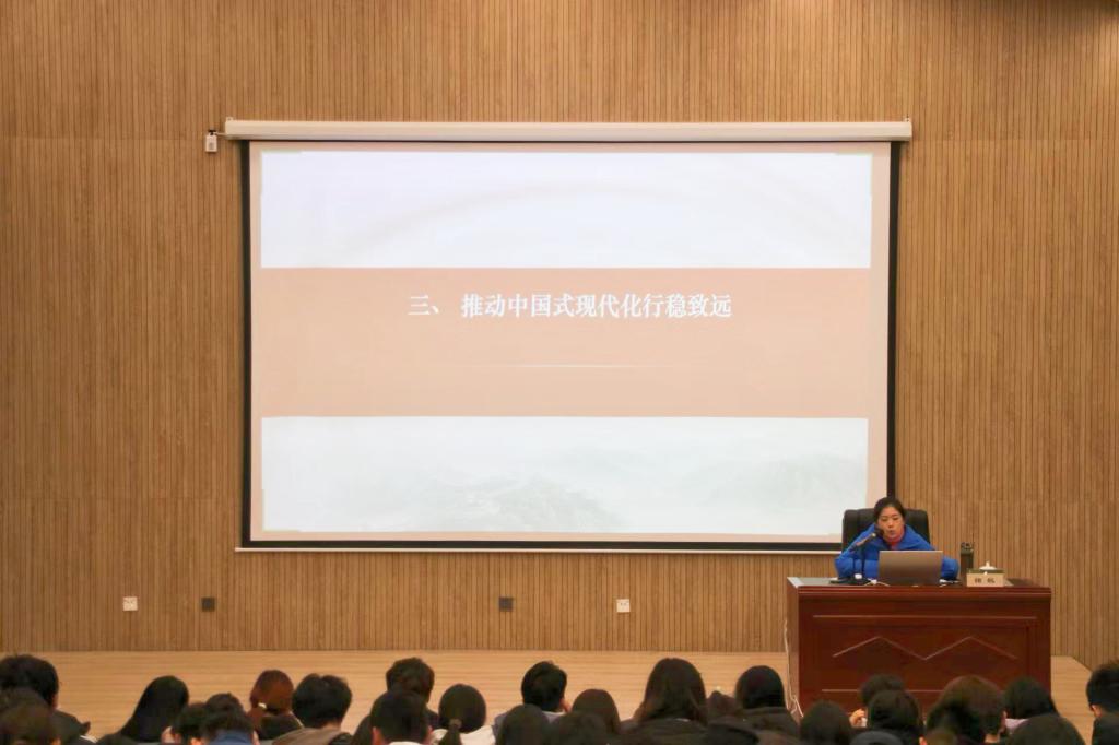 为全面深入学习贯彻党的二十届三中全会精神,不断提高团员学生政治素质,12月17日,我院教师褚敏在淄博校区大学生活动中心报告厅为学校第七期“青马工程”大学生骨干培训班“领航班”作题为《读懂中国式现代化》的报告。