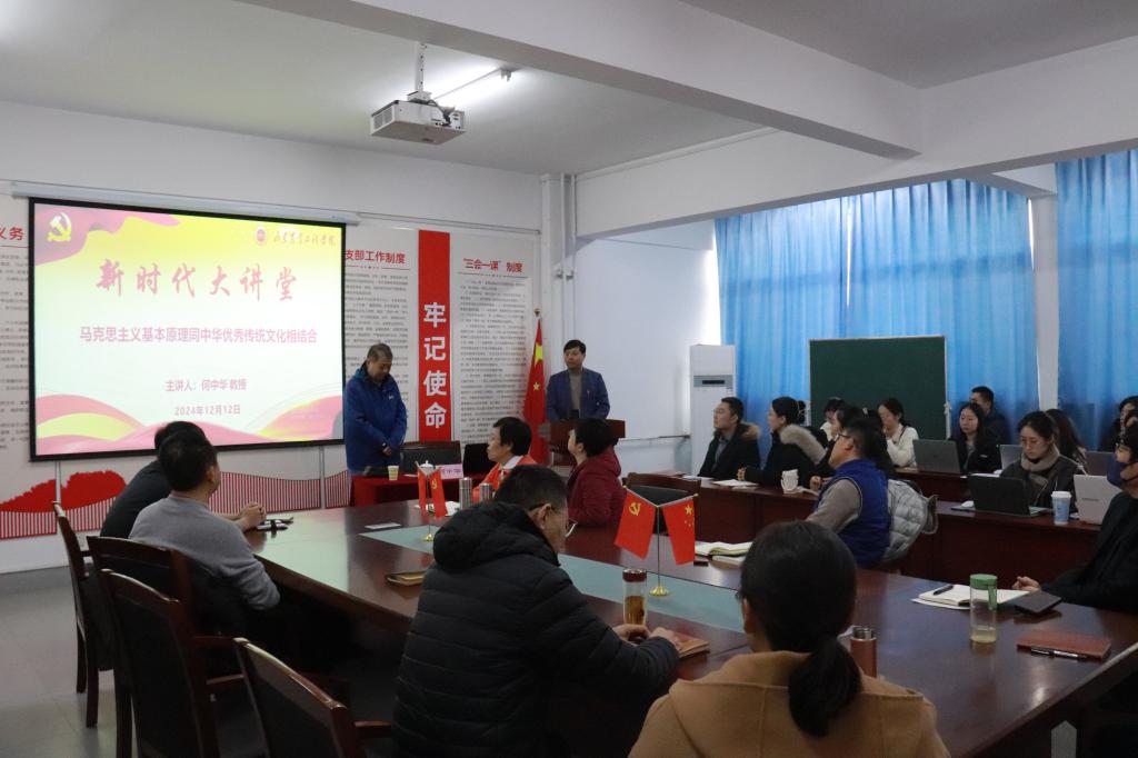 12月12日下午,马克思主义学院在2教309会议室举办学术会议,邀请山东大学何中华教授以《马克思主义基本原理同中华优秀传统文化相结合》为题作报告。报告会由马克思主义学院党总支书记、院长周安忠主持,学院全体教师参加。