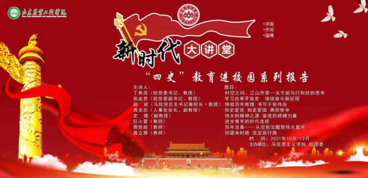 本场报告是今年会新时代大讲堂--“四史”教育进校园系列报告之一,在全校范围内开展“四史”教育进校园宣讲活动,是校党委深入贯彻习近平新时代中国特色社会主义思想,认真落实习近平总书记关于深入开展“四史”教育的重要指示精神,深入开展党史学习教育的重要举措,是创新党史学习教育方式方法的一次有益探索。目的是通过这次系列宣讲活动,引导广大师生深刻了解我们党领导人民进行艰苦卓绝的斗争历程,了解中国近代以来的斗争史、我们党创立以来的奋斗史、新中国成立以来特别是改革开放以来的发展史,了解我们党的光荣传统、宝贵经验和伟大成就,使广大师生深刻认识中国共产党为什么“能”、马克思主义为什么“行”、中国特色社会主义为什么“好”,自觉做共产主义远大理想和中国特色社会主义共同理想的坚定信仰者、忠实实践者,本次系列报告由马克思主义学院、校团委主办。