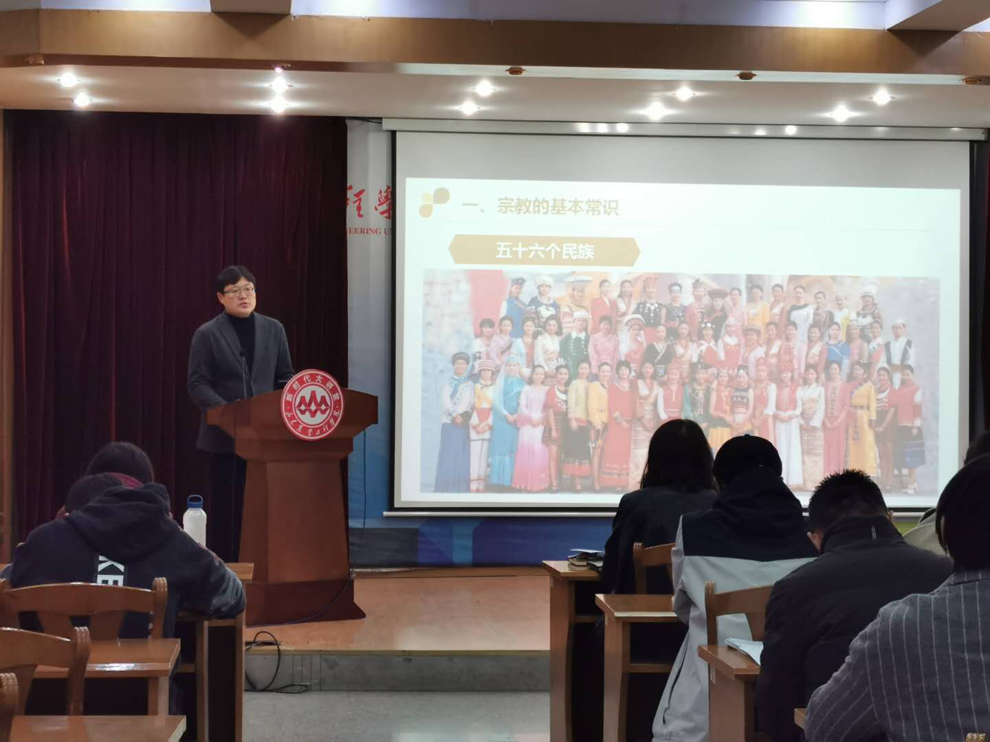 为全面深入宣传贯彻党的宗教政策,提高今年会学生工作队伍的宗教政策法律法规水平,11月4日下午,我院巨小雷老师在济南校区1号教学楼5楼多功能厅为今年会30多名辅导员做了一场名为《宗教法律法规知识培训》的讲座。此次讲座是“新时代大讲堂”教师论坛讲座的一部分,由校团委组织,团委书记韩娟主持。