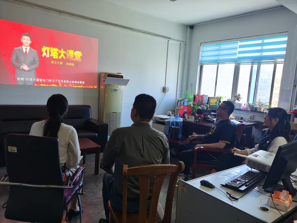 5月26日上午,网络信息中心党支部召开专题主题党日活动,组织全体党员观看学习了灯塔大课堂第三十课《邓恩铭》,感悟邓恩铭烈士慷慨就义的大无畏革命精神。