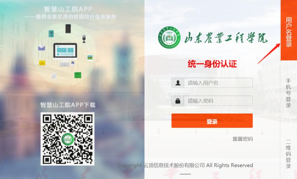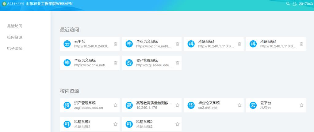 3、输入智慧平台用户名和密码(务必选用户名登录)进入VPN界面,点击你想进入的链接就可以了
