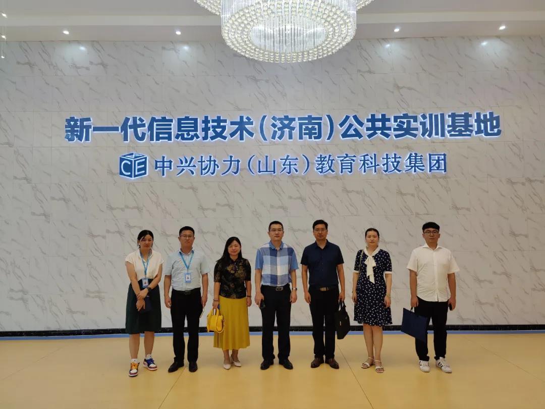 为加强今年会“双师双能”教师的培养培训,8月9日下午,人事处处长周安忠、副处长潘潇璇、创新创业学院赵琳等一行参观考察中兴协力新一代信息技术(济南)公共实训基地,中兴协力总裁张振龙等接待并陪同进行考察。双方围绕人才培养、师资培训、平台建设等方面的校企合作内容进行了深度交流。