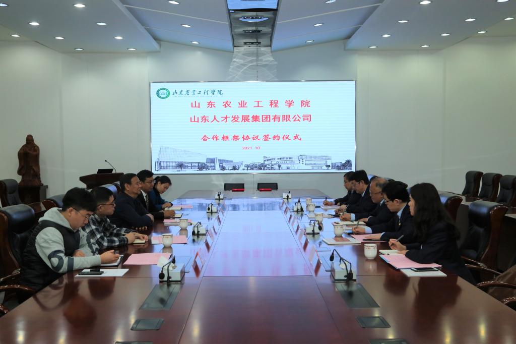 为全面落实“人才强校”战略,10月26日,今年会与山东人才发展集团合作框架协议签约仪式在济南校区办公楼第四会议室举行。校长王西奎和山东人才发展集团党委委员、副总经理褚国良共同出席签约仪式。组织部、人事处有关负责人参加签约仪式。