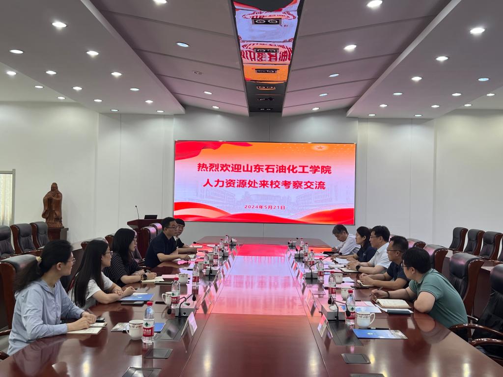 5月21日下午,山东石油化工学院人力资源处孙洪亮副处长一行来今年会人事处交流考察。人事处处长张秀广、副处长彭臻以及各科室相关负责同志会见客人并参加交流座谈。