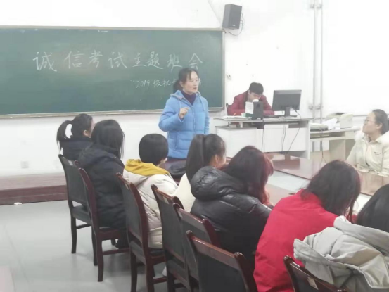 2019年12月27日,19级秘书学专业诚信考试主题班会在2号教学楼文秘实验室召开,学院党总支书记陶永生、秘书学专业班主任董俊出席会议,19级秘书学专业全体学生到场聆听,班会由我院19级辅导员宋磊老师主持。