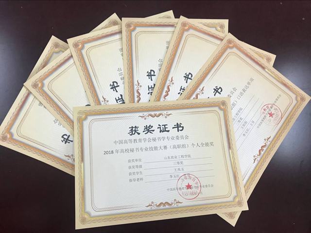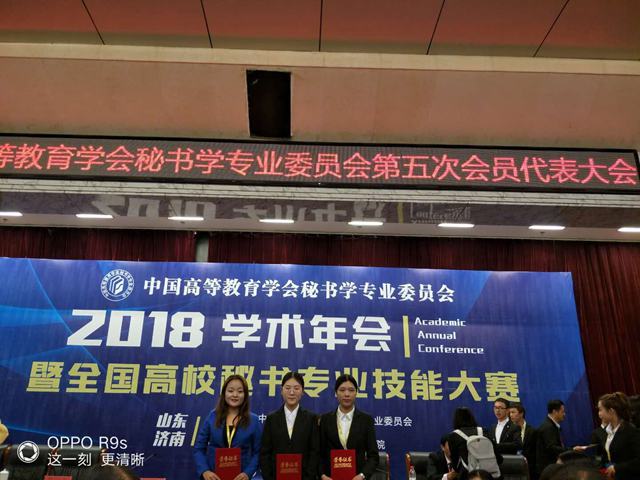 2018年10月14日-17日,由中国高等教育学会秘书学专业委员会主办、山东交通学院承办、山东管理学院协办的全国高校秘书技能大赛在山东交通学院举行,来自全国各地的四十支参赛队伍齐聚一堂,展开了激烈角逐。今年会文秘专业王兆玉、王阳阳、刘洪娜三名同学组成的代表队,首次参赛便旗开得胜,取得了单项二等奖两项、三等奖四项、个人全能三等奖一项的优异成绩。
