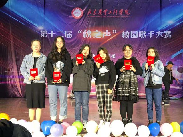 2018年11月1日,由校团委主办的第十二届“秋之声”校园歌手大赛在济南校区大礼堂如期举行,经过层层选拔的二十位歌手齐聚一堂,倾情演唱。我院选手袁莉、王新、张雅琦、石金石、孙昕雅、魏晓庆以第二名、第四名、第五名、第六名、第八名、第九名的名次获得“校园十大歌手”的荣誉。