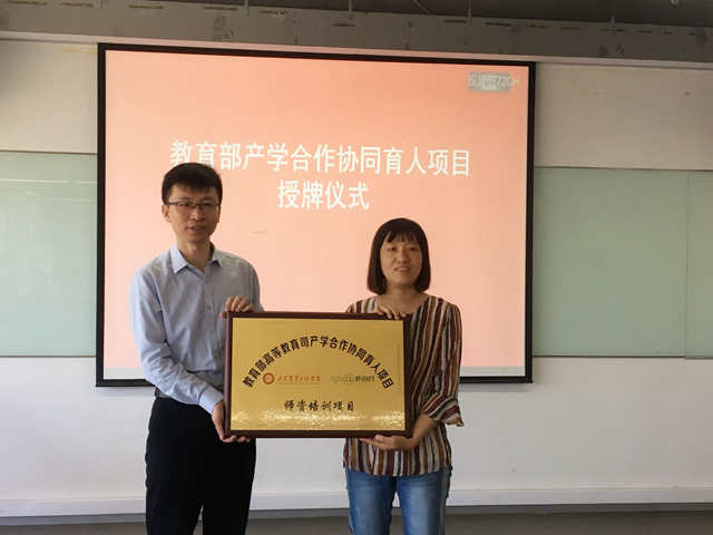 会上,清华大学国家服务外包人力资源研究院副院长毛居华亲自为2018年第二批北京他拍档电子商务服务有限公司教育部协同育人项目立项高校举行授牌仪式,我院申报的跨境电商师资培训项目成功获批授牌。本项目的建设目标是打造高水平跨境电商“双师双能型”教学团队,提高教师专业素养,以岗位职业能力需求为导向,构建“实操+创业”的人才培养模式,产学合作协同育人,校企合作建立跨境电商师资培训基地,分阶段、多途径解决跨境电商教师短缺问题。