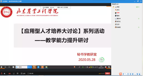 2020年5月28日下午,秘书学教研室召开了应用型人才培养大讨论电话会议,会议主要围绕“如何提升教师教学能力”和“如何进行课程思政”两个话题展开研讨。秘书学教研室主任田芸主持了会议,秘书学教研室全体教师参加了此次活动。