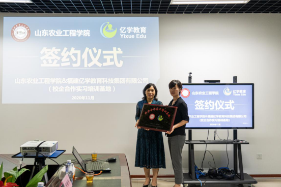 11月20日,我院与福建亿学教育科技集团有限公司校企合作实习培训基地挂牌仪式在厦门亿学公司举行。学院院长王晓霞一行四人参加了挂牌仪式。
