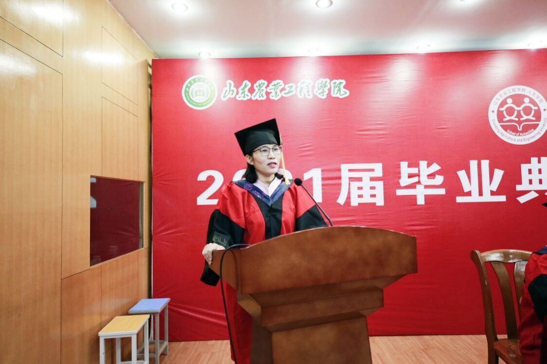 本次典礼由党总支副书记徐波主持。伴随着国歌响起典礼正式开始,首先王晓霞院长对同学们的顺利毕业表示了祝贺,四年陪伴,看着学生从青涩到成熟,学有所成,学院老师们感到十分欣慰。接下来,教师代表赵巍巍发言,作为老师毫无保留的将知识传授给学生,看到学生们学有所成顺利毕业是最值得高兴的一件事情,同时代表老师为大家未来的人生之旅送上了几点建议。随后,学生代表姚彤欣发言,师恩没齿难忘,蓦然回首,青春无悔,即使毕业也要继续学习,为社会奉献,为母校争光。讲话结束,王院长宣读学士学位授予名单并举行学位授予仪式,由学院学位分委员会成员为每名同学进行拨穗仪式并授予证书,这光荣的一刻值得永远被记录。