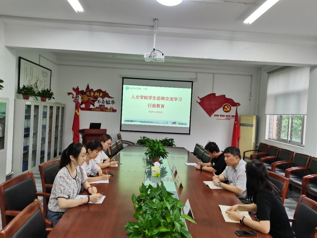为保证我院学生赴韩交流学习的顺利进行,7月14日上午,我院组织2019级应用韩语专业即将赴韩交流学习的3名同学召开了行前教育会,人文学院党总支副书记徐波、组织员朱峰以及应用韩语专业负责教师王晓珍出席了此次行前教育会。