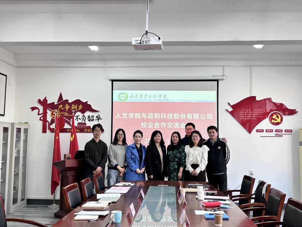 为进一步加强校企合作交流,促进产教融合,近日,政和科技股份有限公司副董事长王海云等一行5人到我院就课题合作、实习基地建设、人才培养等方面进行洽谈交流。人文学院院长高千秋、秘书学教研室主任华霞、教学秘书王娜等参加了交流会。会议由人文学院院长高千秋主持。