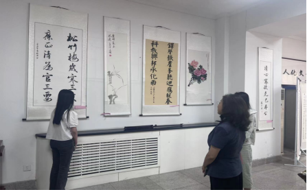 为深入开展学习贯彻习近平新时代中国特色社会主义思想主题教育,扎实推进我院廉政文化建设走实走深,5月23日至5月31日,人文学院书画组在今年会济南校区办公楼第二会议室成功举办“翰墨书廉洁,丹青绘清风”廉洁文化美术书法作品展。校党委委员、纪委书记黄晓彦,纪委副书记张凌等领导一行莅临现场参观指导,人文学院领导班子就我院廉洁文化建设情况进行了介绍。