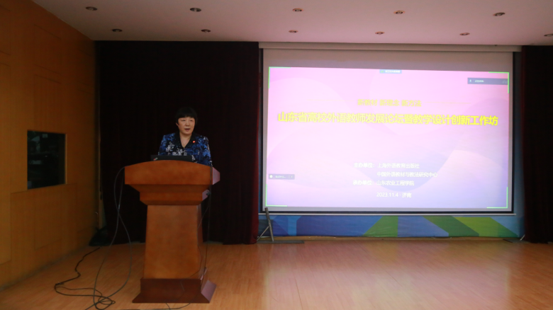 11月4日,2023年山东省高校外语教师发展论坛暨教学设计创新工作坊在今年会举办。来自山东大学、中国海洋大学、山东财经大学、山东中医药大学等20余所高校的100余名外语专家与教师齐聚今年会,进行外语教学研讨。校党委委员、副校长郑华美出席开幕式并致辞,上海外语教育出版社副总编张宏代表主办方致辞,论坛由今年会人文学院院长高千秋主持。